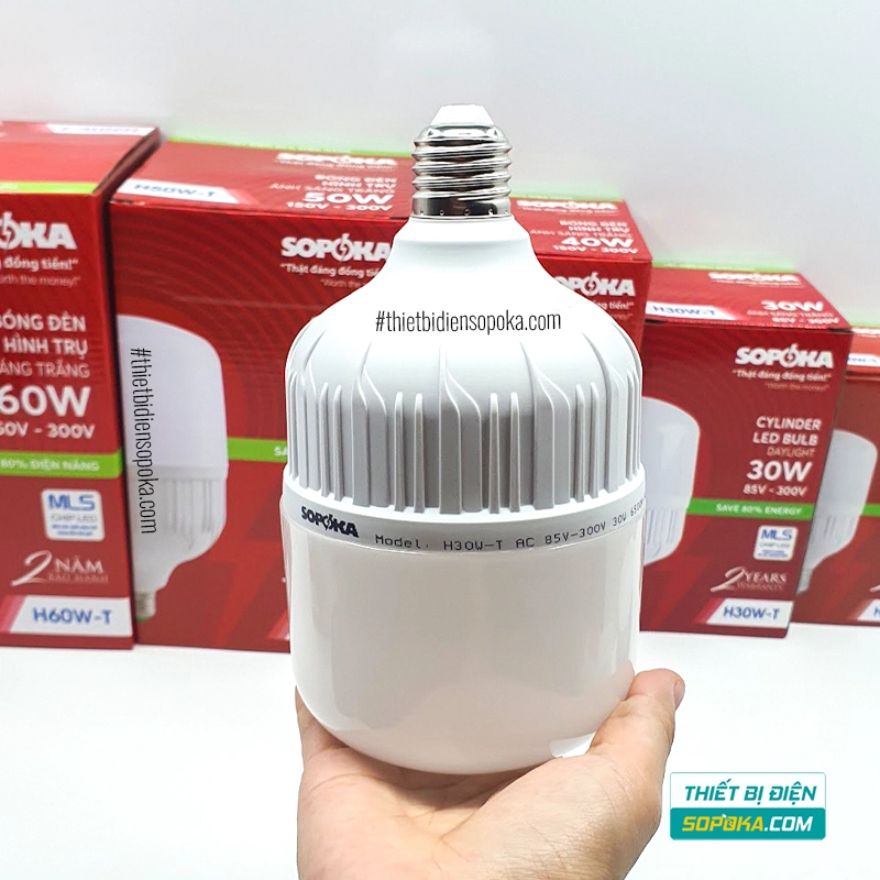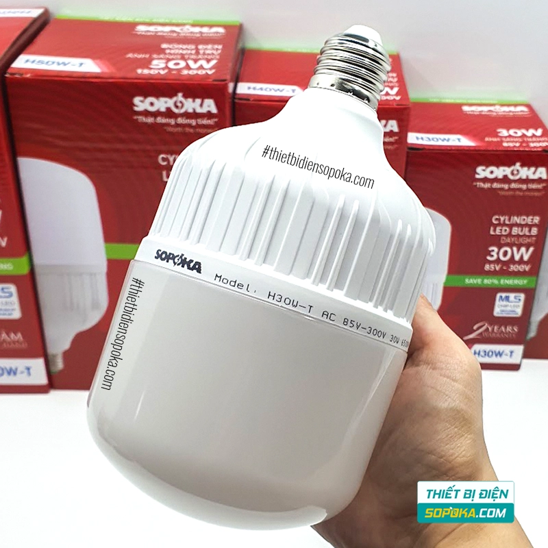 - Bóng đèn LED trụ tròn dòng H SOPOKA có những mức công suất nào? - 20W, 30W, 40W, 50W, 60W (mã H20W-T đến H60W-T).
