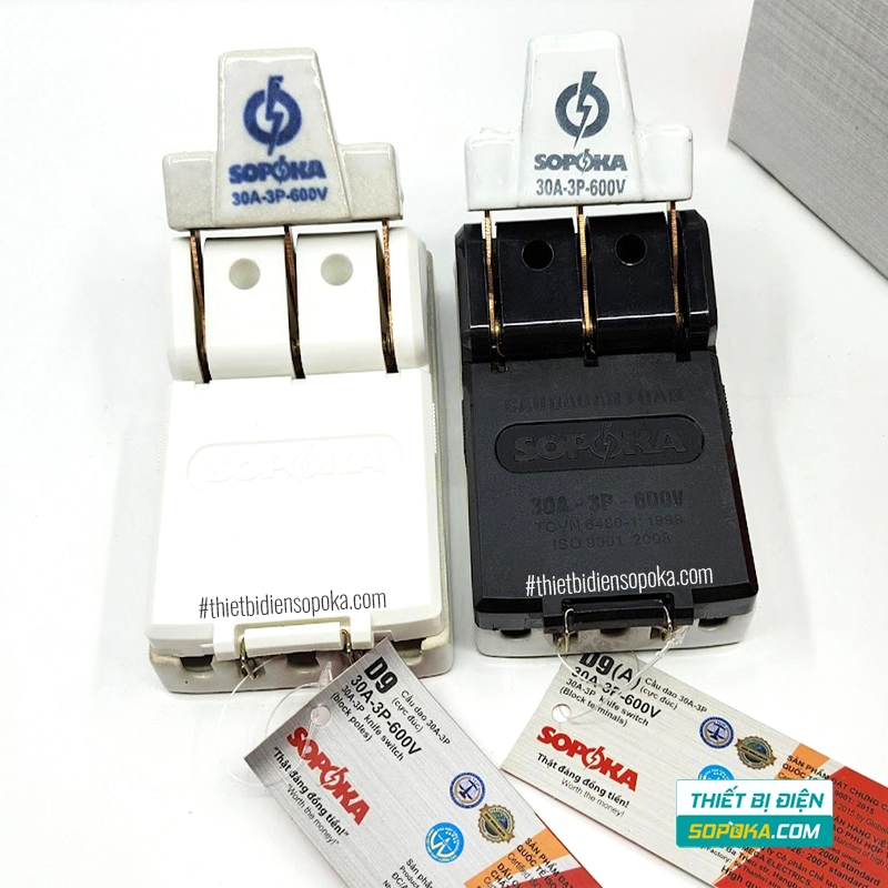 - Cầu dao D9/D9A SOPOKA là loại cầu dao gì? - Là cầu dao điện 3 pha 3 cực, dòng điện định mức 30A và điện áp tối đa 600V.