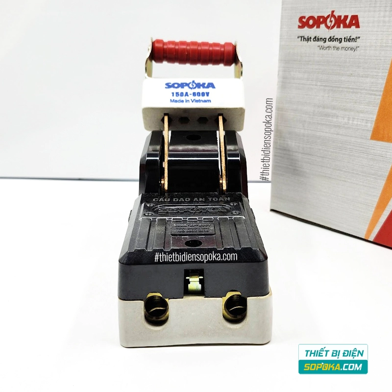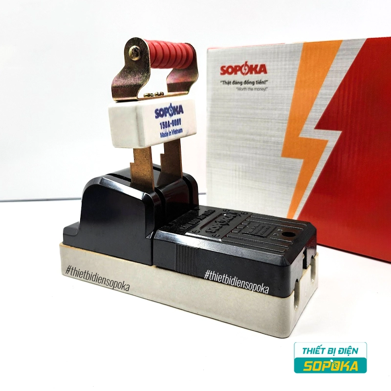 Cầu Dao Đế Sứ 1 Pha 150A 2P D34 SOPOKA là thiết bị đóng cắt cơ dùng cho mạch điện 1 pha tải lớn, hỗ trợ thao tác ngắt nguồn và cách ly mạch điện tại các vị trí cần kiểm soát nguồn bằng tay. Dòng sản phẩm này được công bố với đế sứ cách điện, cực đúc bằng đồng hợp kim, vỏ nhựa ABS chống cháy và cơ cấu lò xo tăng lực kẹp giúp tiếp xúc chắc hơn trong quá trình vận hành. Điểm phù hợp của sản phẩm nằm ở khả năng đấu dây lớn, kết cấu chắc, dùng cho tủ điện, cửa hàng, kho, xưởng nhỏ hoặc các điểm phân phối điện nhánh cần cầu dao cơ truyền thống dễ quan sát trạng thái đóng cắt.