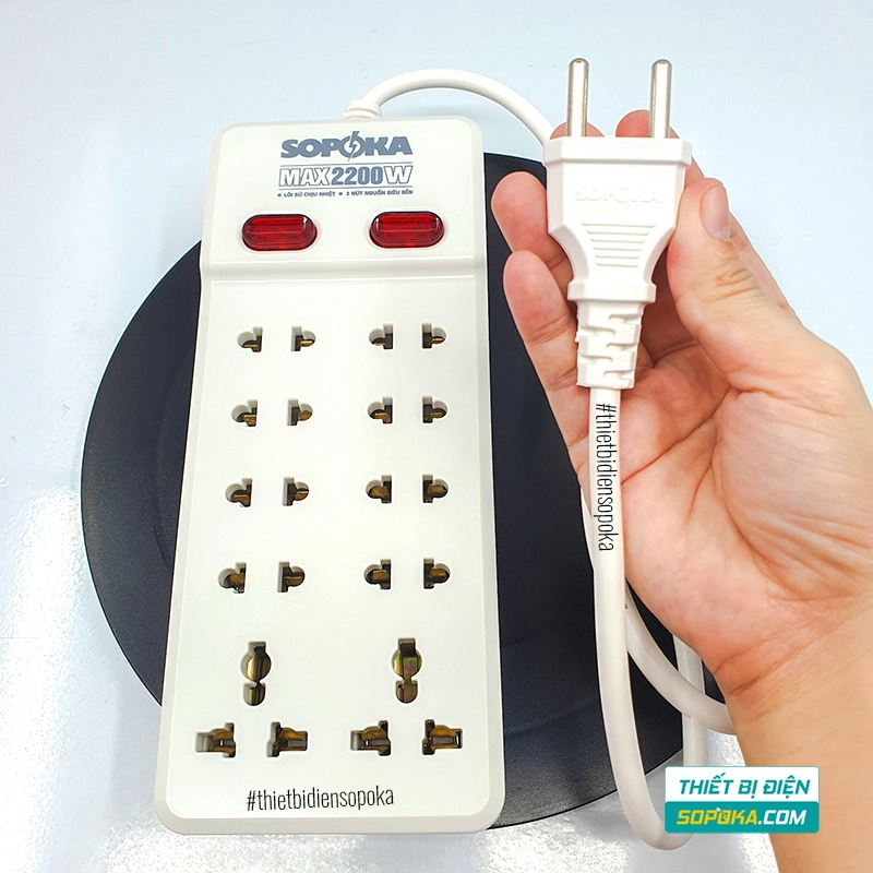 - Ổ cắm điện 10 lỗ có dây 2200W SOPOKA