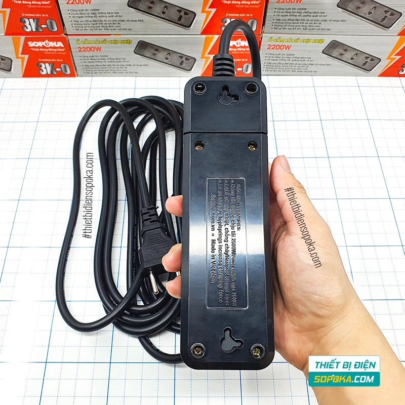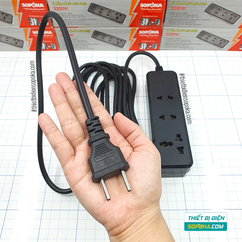 Nếu cần ổ cắm có dây 3 lỗ dùng cho thiết bị gia dụng phổ biến đến 2200W, 3K3/3K5 SOPOKA phù hợp nhu cầu cắm/rút thường xuyên, ưu tiên kẹp chắc và chịu nhiệt.