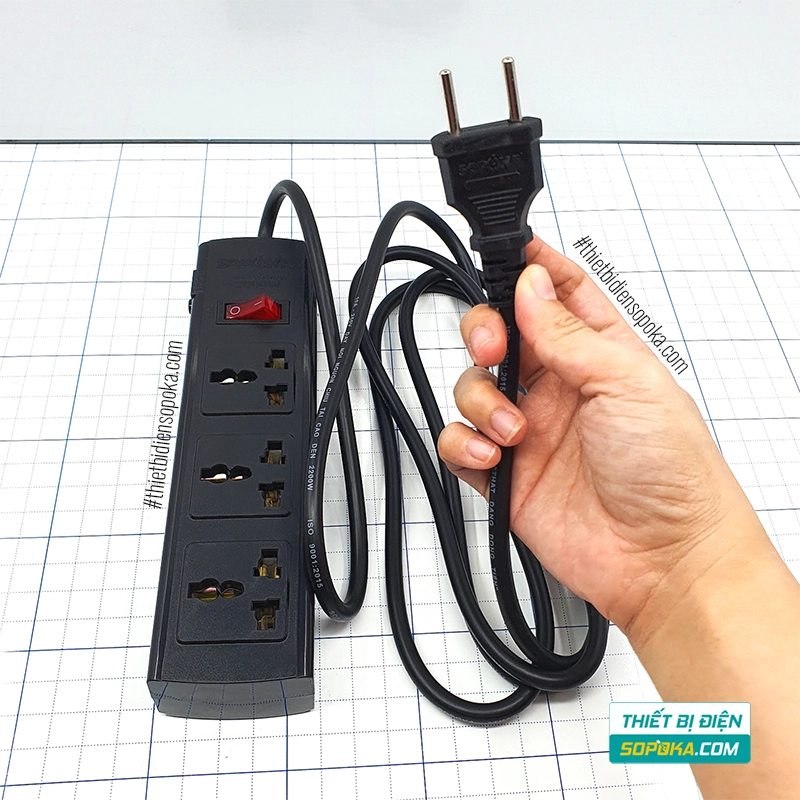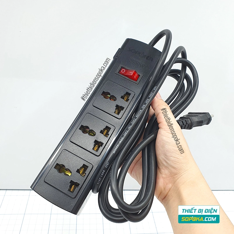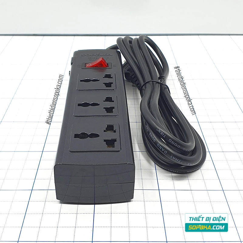 Nếu cần ổ cắm có dây 3 lỗ, tải 2200W, có breaker tự ngắt khi quá tải và lõi sứ chịu nhiệt để tăng an toàn khi dùng thiết bị công suất cao, SOPOKA 3T3/3T5 là lựa chọn phù hợp cho gia đình và văn phòng. Dây dài 2.5m hoặc 4.5m giúp bố trí linh hoạt. Thiết kế 3 chấu đa năng hỗ trợ nhiều loại phích cắm phổ biến.