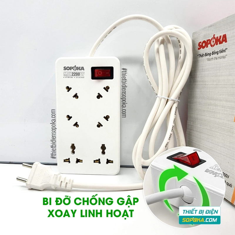 - Ổ cắm điện 2 ổ đa năng 2 chấu 3 chấu SOPOKA