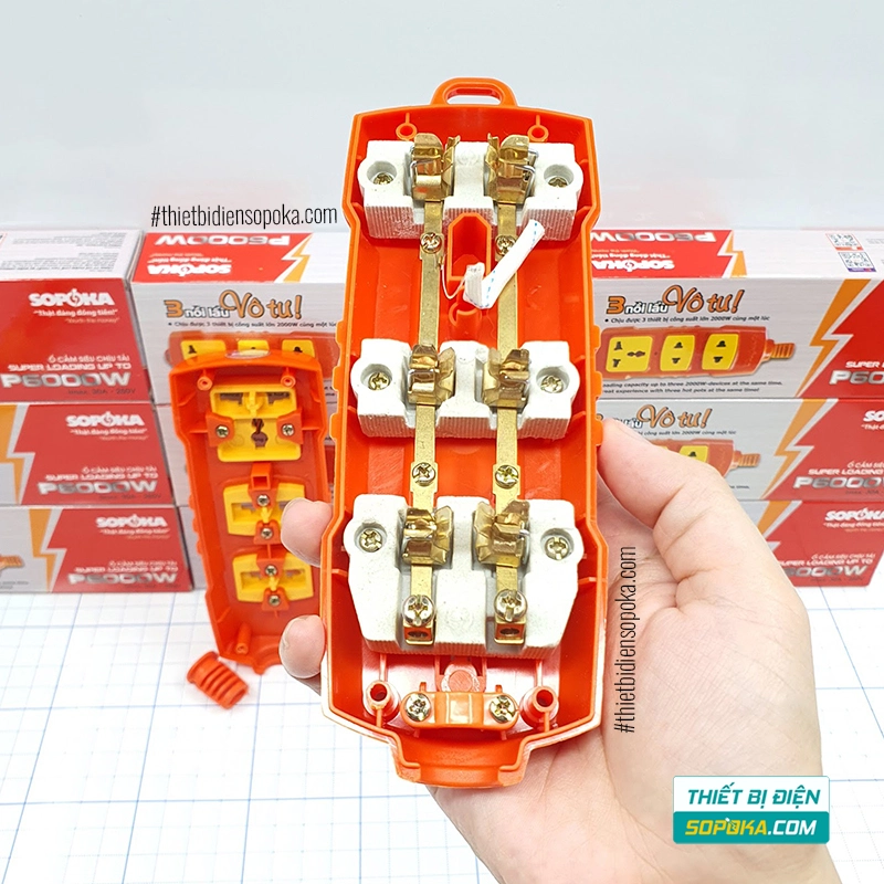 Nếu bạn cần ổ cắm rời 3 lỗ – chịu tải rất cao 6000W – lõi sứ chống nóng – kẹp phích chắc, P6000W SOPOKA là lựa chọn phù hợp cho công trình, nhà xưởng và các thiết bị công suất lớn.