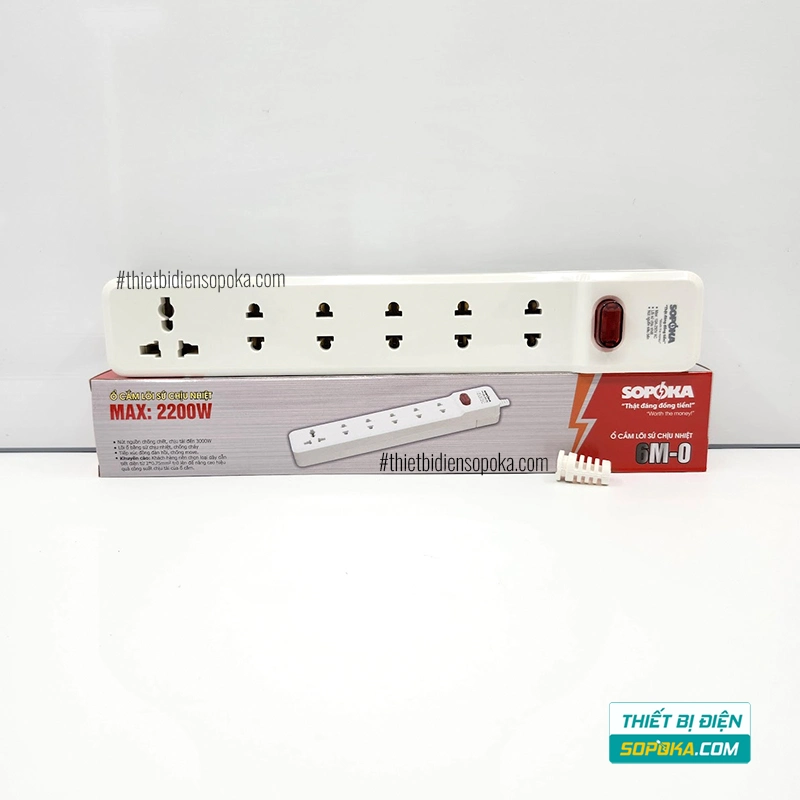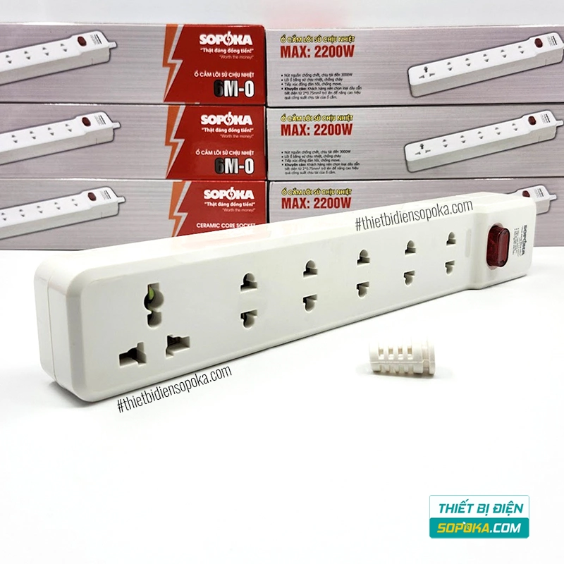 Nếu cần ổ cắm rời 6 lỗ để tự đấu dây theo nhu cầu, chịu tải đến 2200w và có công tắc tổng, 6M-0 SOPOKA phù hợp cho gia đình, văn phòng, cửa hàng.
